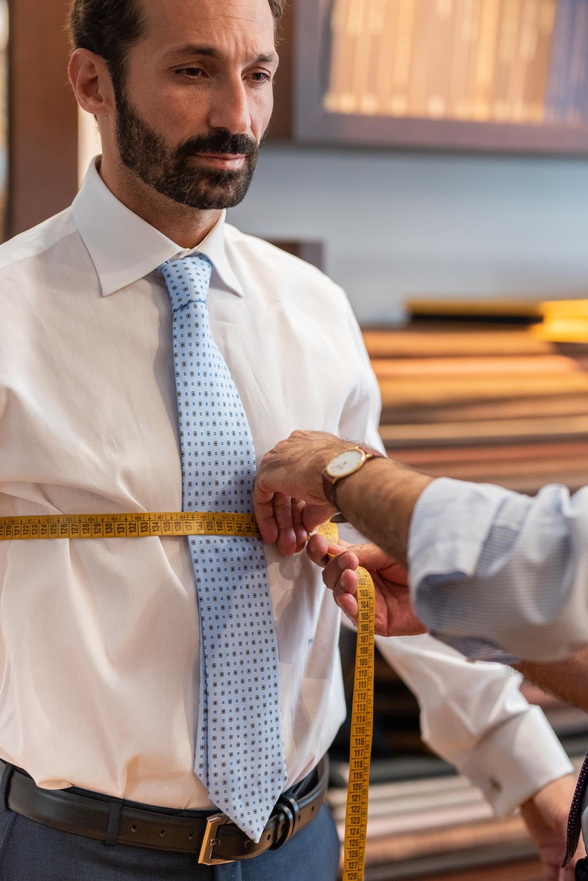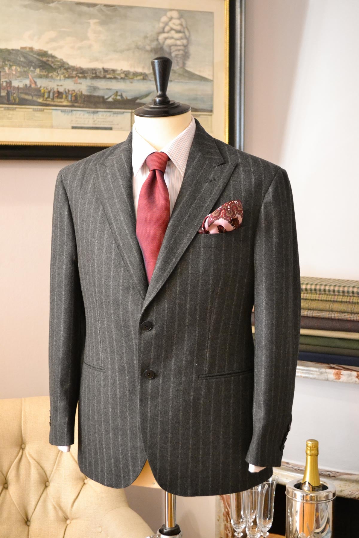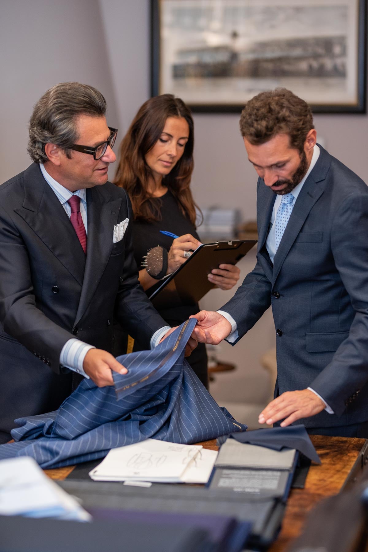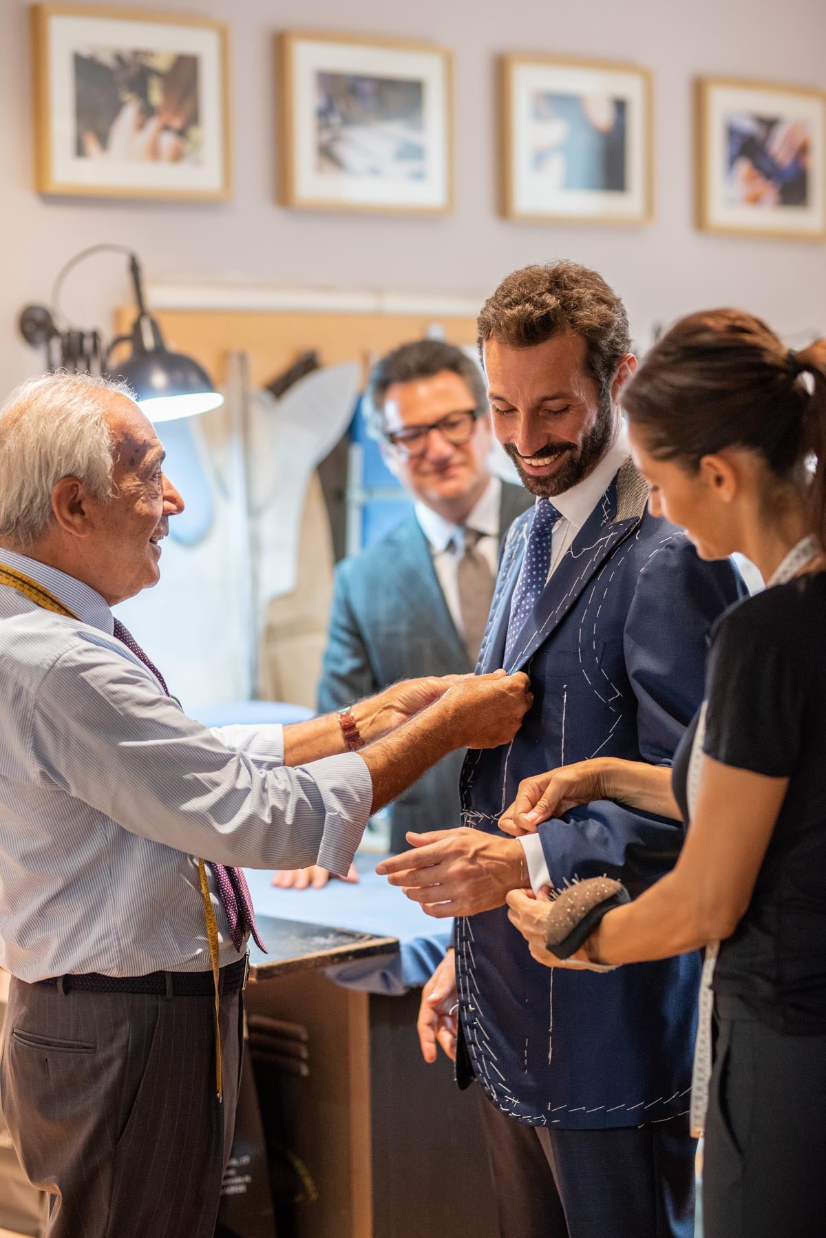 Abiti su misura, fatti completamente a mano, che rappresentano il culmine dell'eleganza maschile. Espressione massima della sobrietà. Disegnati con l'attenzione di sarti capaci di mettere in risalto le qualità di chi li indossa e di esaltarne la personalità. I tempi di consegna sono di circa un mese e mezzo.