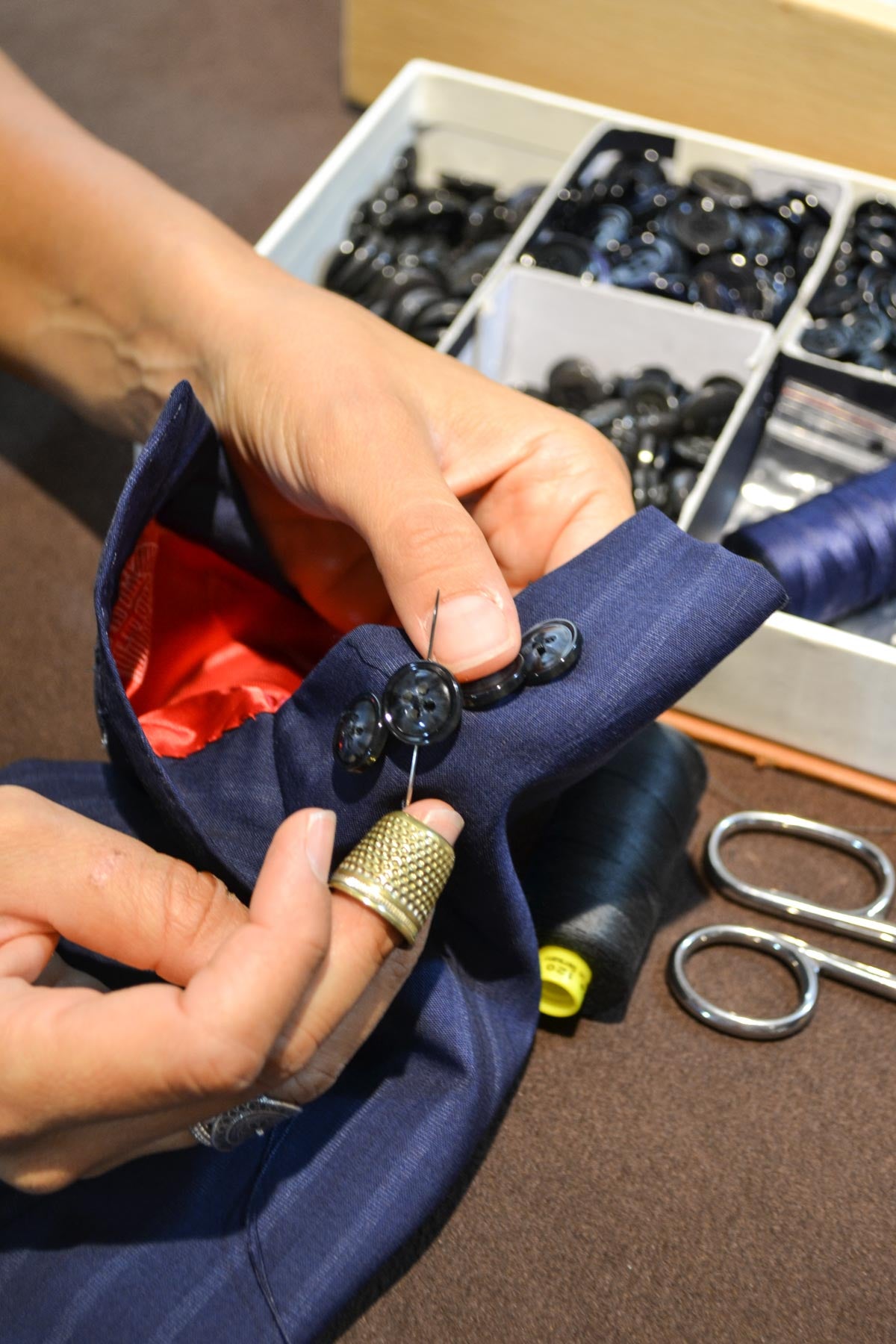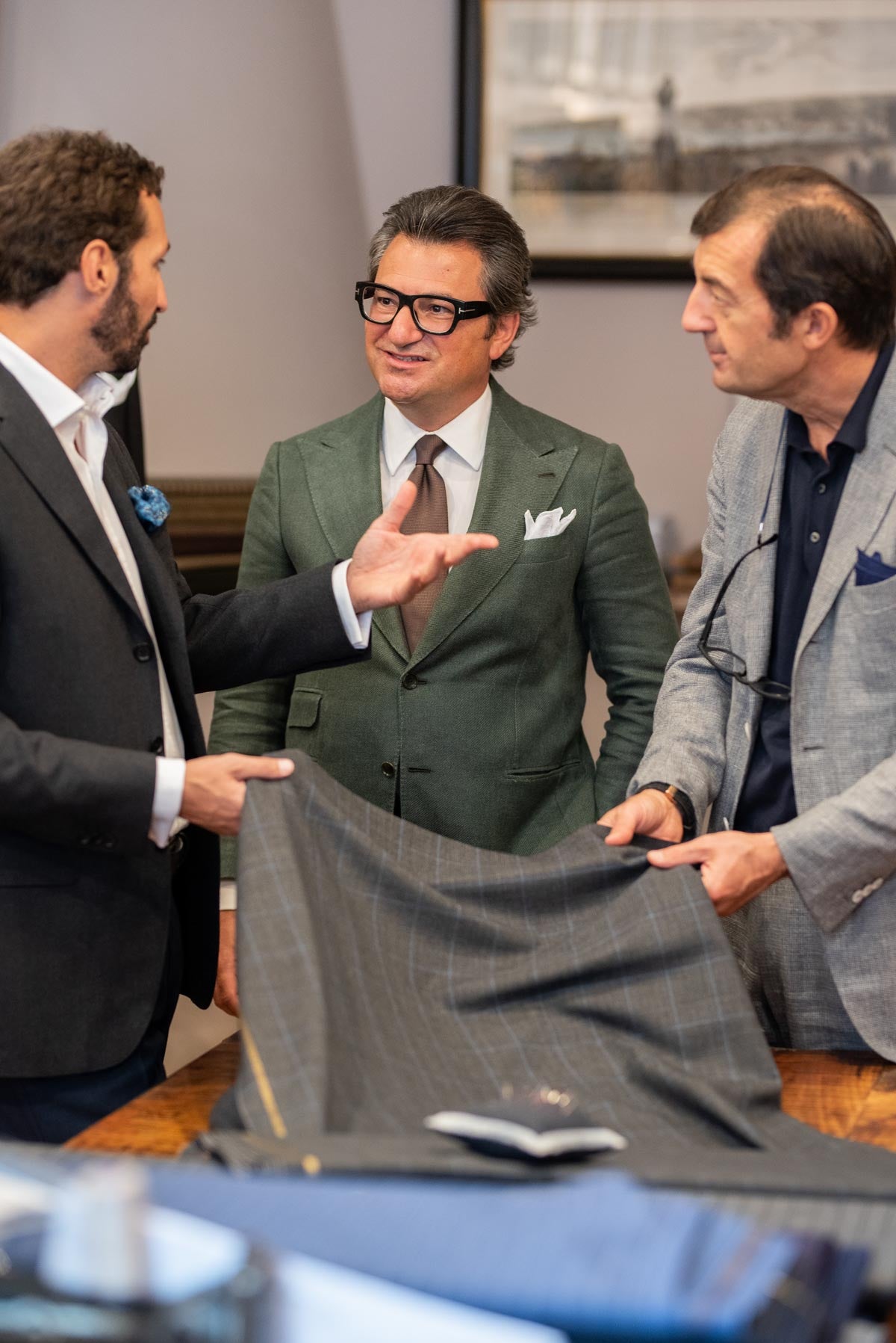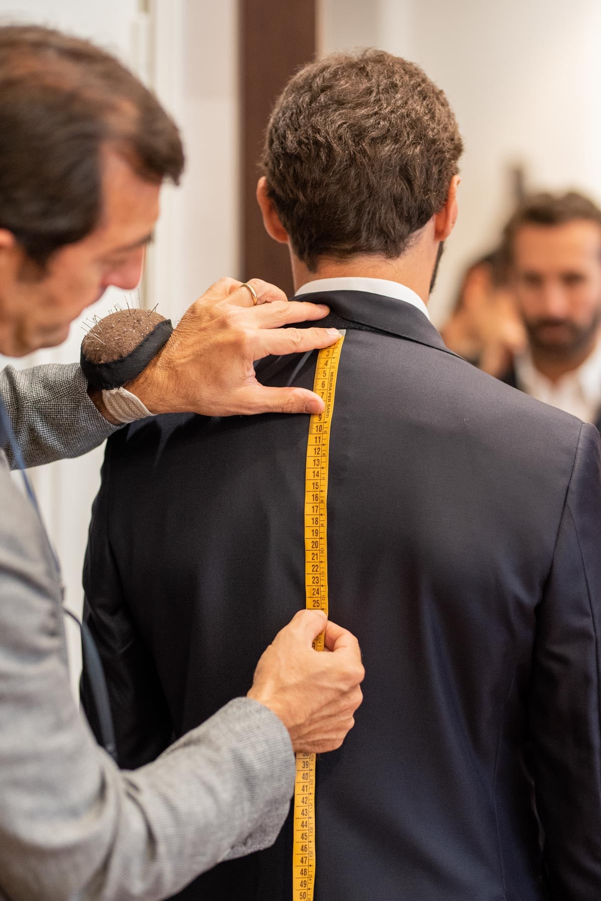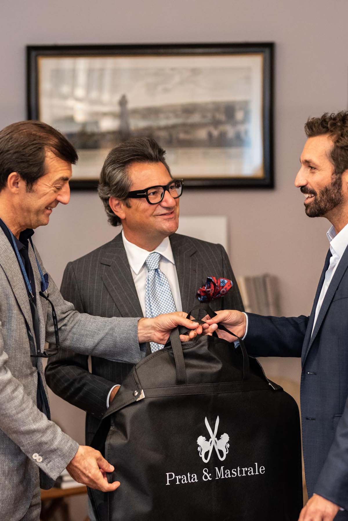 È il momento in cui, alla presenza dello stylist e del titolare della maison, il cliente indossa l’abito finito. Il marchio di garanzia “Prata & Mastrale”, un’etichetta con la data dell’ordine e il nome del cliente, viene cucito al suo posto, ovvero dentro la tasca interna destra.