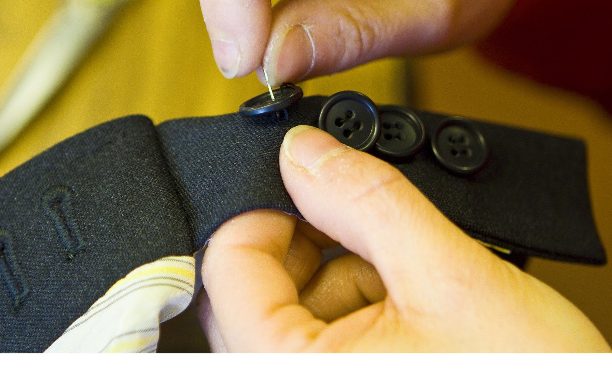 Ogni abito Prata & Mastrale presenta accurate finiture a mano interne ed esterne. Su richiesta del cliente, per impreziosire il capo, verranno eseguite a mano anche asole e ribattiture.